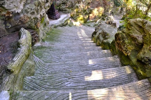 Faux Bois, meaning “false wood” in French, is the interpretation of wood and wood grain in materials as diverse as concrete and linen. It’s been around at least since 1875, when Joseph Monier first designed a bridge imagined after timbers and logs.