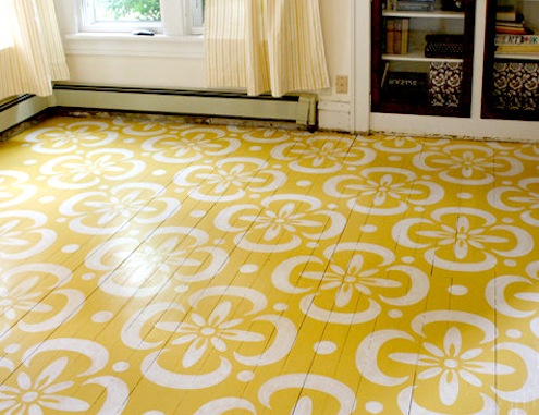 Painted and stenciled floors have been the thrifty décor solution for high-traffic areas since colonial times. You can paint over concrete floors, any sort of wood floor you’d rather not refinish, or peel up old sheet goods, sand and paint right over the plywood underlayment, as long as it’s in good shape.