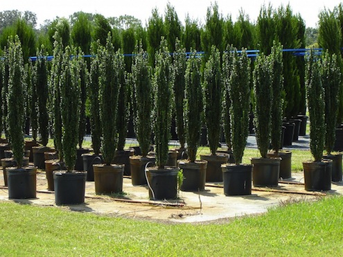 Slow growing by season but capable of reaching heights of 30′ eventually, American hollies are evergreen and their foliage is the quintessential Christmas decoration—just watch out for the long spikes. This holly’s crimson berries don’t just brighten up your yard, they feed deer as well as many birds.