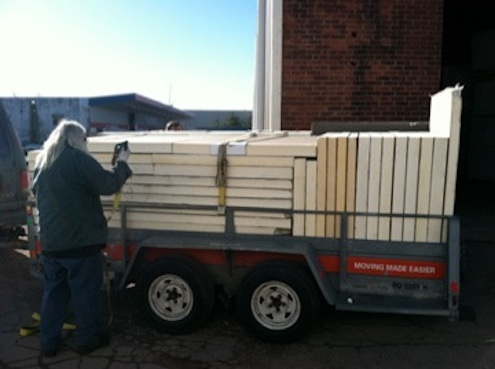 I did have to rent a trailer and drive 25 minutes to pick up, but that was a small price to pay for $1,400 in savings. The deal was made even sweeter when Wallie offered me several dinged sheets to compensate for the extra waste I’d generate when cutting up the 4′ x 4′s.