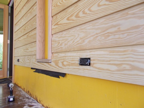 We installed the entire wall using finish nails. If this were done on the exterior, you would want to prime all six sides before installation, back-caulk the siding on any joints, and use stainless or galvanized siding nails. And of course you would have asphalt paper or another type of building wrap behind all the siding. In other words, we had it relatively easy with this project since we didn’t have to worry about any of that.