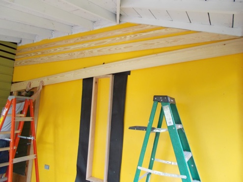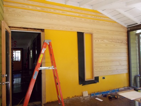 For the first stop on our renovation road trip, we were asked to help install wood paneling on the wall of a closed-in porch for Nikki and Marc at 86’n It.