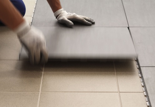 Suppliers are also promoting quick-laying floor systems that can be used over existing floor coverings. For instance, “Clip Tile” by Imola (above) features an adhesive-free dry interlocking technology; similarly, “Del Conca Fast” is a patented system for installing ceramic flooring without joints and mortar.