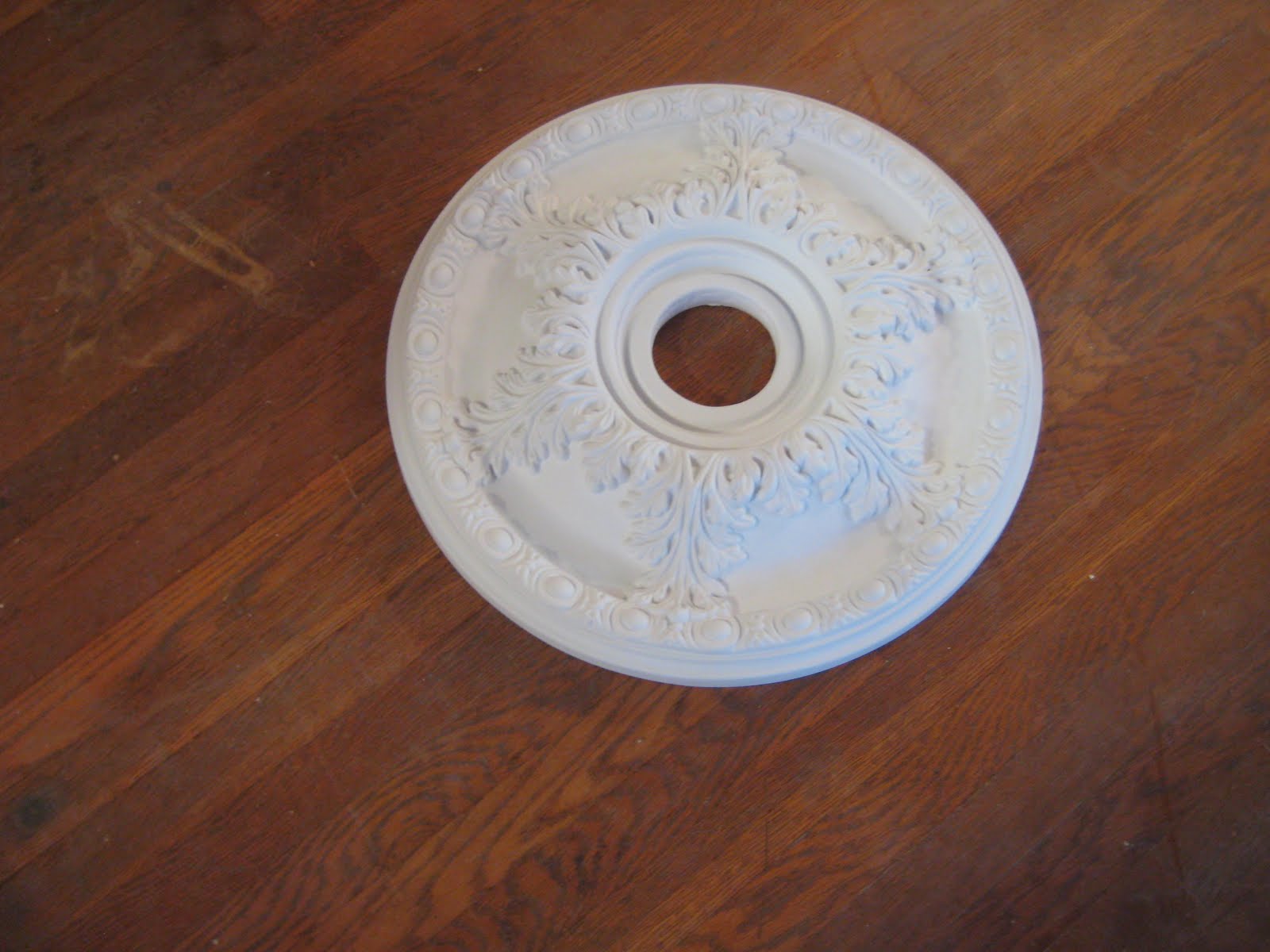 When it arrived in the mail and we opened it I was very excited. Sometimes I get scared and nervous that the quality of products we buy online aren't going to hold up in person, so I was glad that the pattern and quality looked great It came pre-primed so I brought out the flat ceiling paint that will eventually be painted on the ceiling so that the medallion would match in color. We briefly debated painting it a different color or painting some detail in it but we quickly decided we wanted it the same color as the ceiling