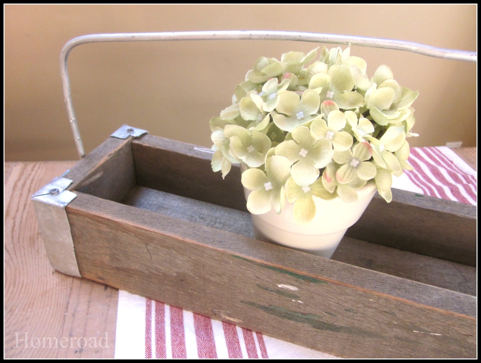 This crate began life as the leg of a sawhorse... I love the old paint on the wood. Using an old aluminum mini loaf pan and tin snips, I cut pieces of the trays to... Continue reading