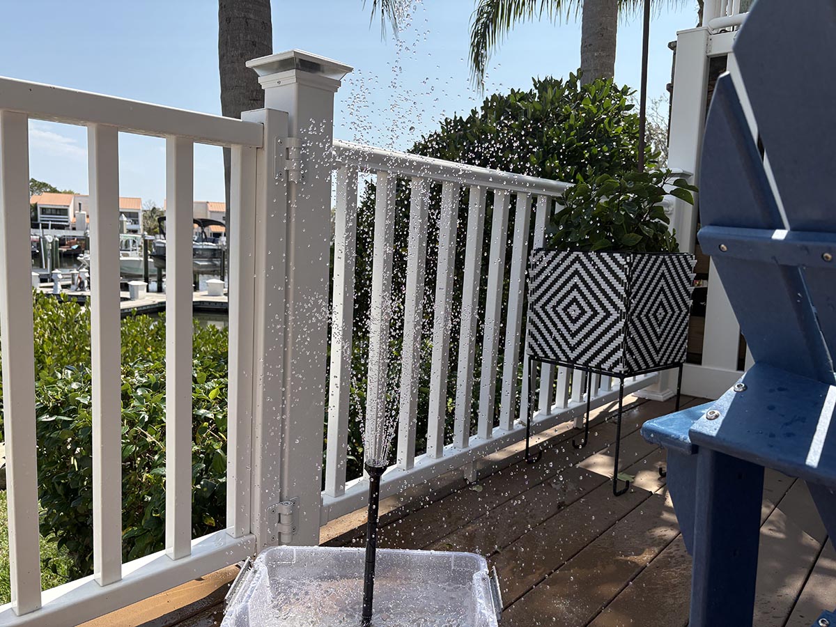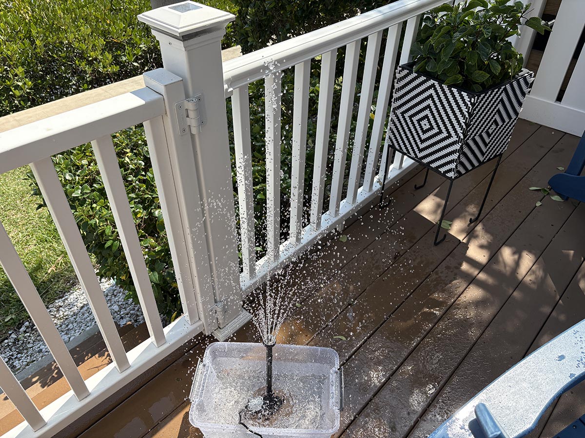 We placed each pump in direct sunlight and tested in different conditions, including full sun, partial sun, and shade, to gauge how well they performed. We measured spray height and consistency, noting any significant drops in performance under less-than-ideal lighting conditions.