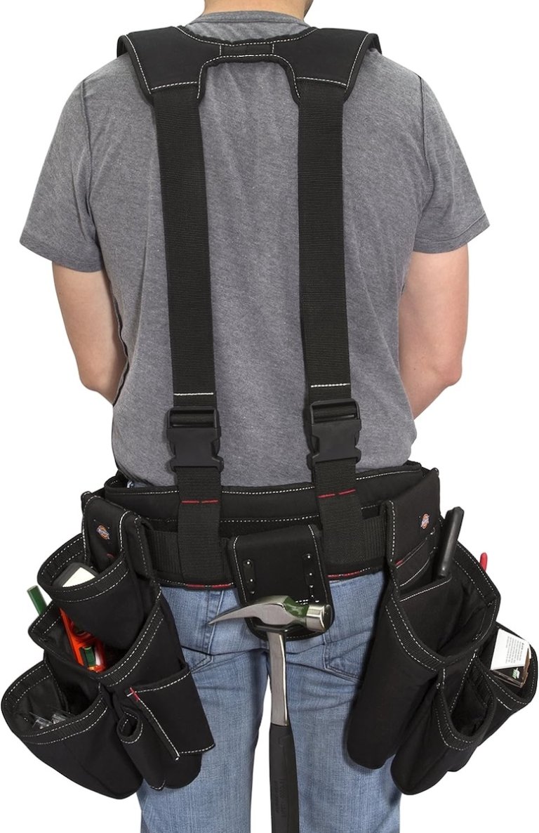 Buy at AmazonDickies’ 4-Piece Carpenter’s Rig—a belt-and-suspenders combo has an impressive capacity: There are two main pouches with a total of 14 pockets and three tool loops, plus a phone pouch on the suspenders. A 2-inch-wide outer belt allows for further accessories to be added.